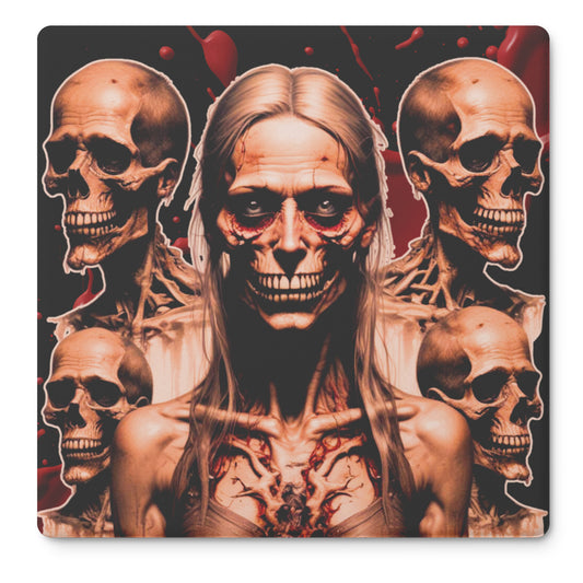 Zombie Horror Girl and Skulls Coasters, Set of 4